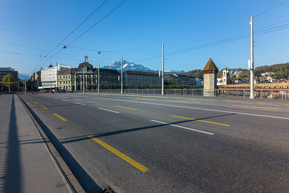 Speziellerweise hatte ich immer die Vision, Luzern in diesem Sinne abzubilden. Leer, ausgestorben, 28 days later. Nun gut. Häufig ist Luzern auch ausgestorben, wenn wir die Altstadt nach Ladenschluss oder so als Beispiel nehmen. Trotzdem ist hier und dort mal ein Restaurant/Bar doch noch geöffnet, oder Leute/Verkehr ist vorhanden. Ganz down ist Luzern dann doch nicht.