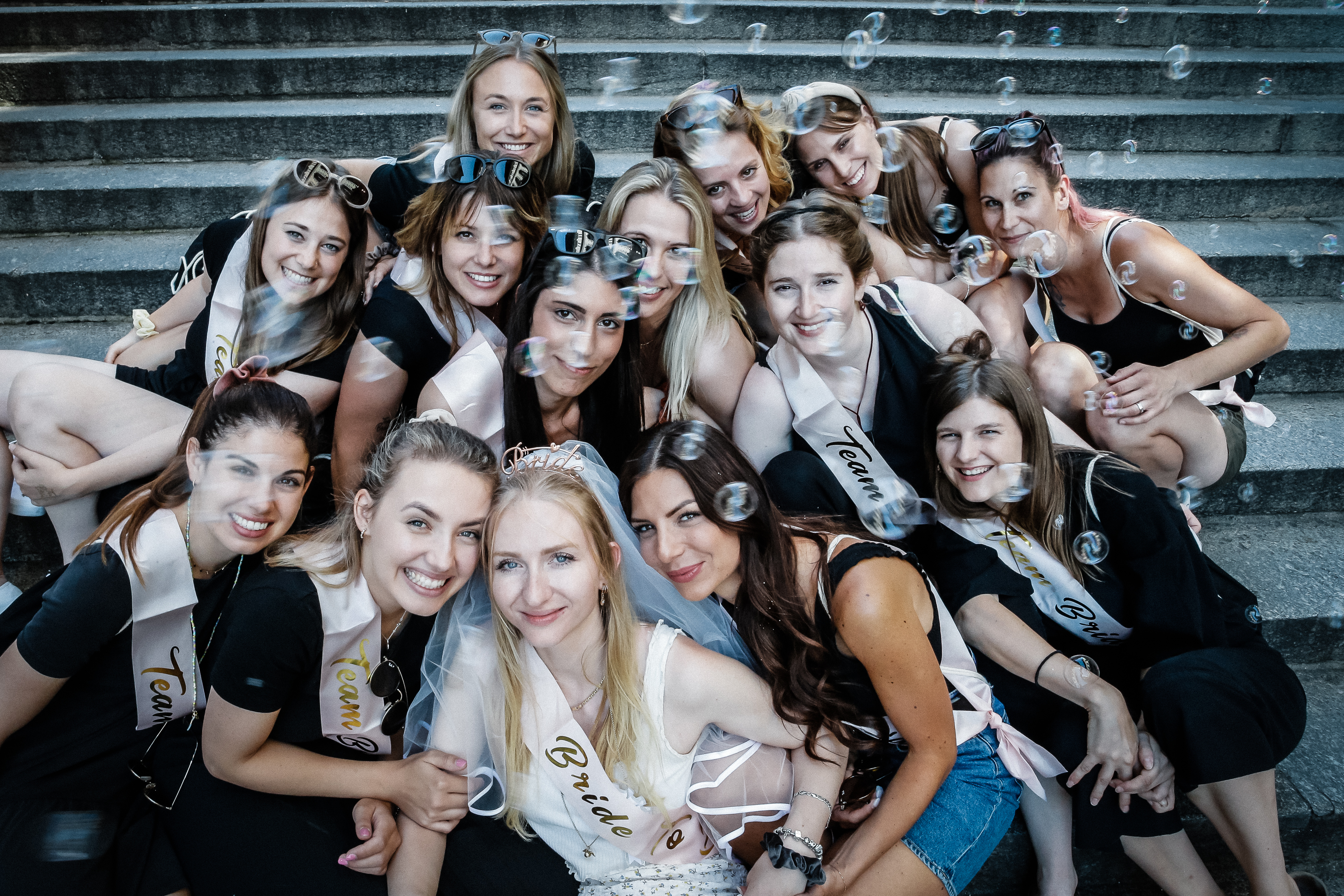 Da gibt es von mir her keine Begrenzungen. Von kleinen Gruppen bis zu grossen Gesellschaften ist alles möglich. Bei vielen Personen kann man besonders draussen kreative Fotos umsetzen. Tendenziell gibt es eher weniger Fotos, je grösser die Gruppe ist. Warum? Weil oft die Koordination insgesamt anspruchsvoller ist und ab und zu mal jemand die Augen zu hat oder nicht bereit ist… Dann sortiere ich solche Bilder aus.